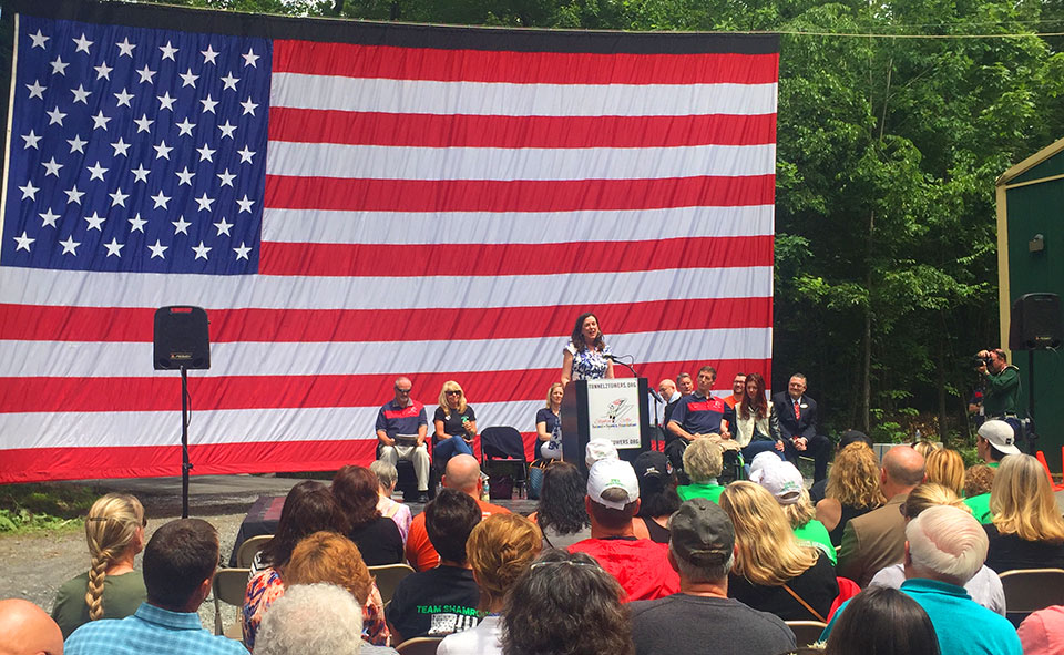 Owners Sue and Lee Allwein's daughter and son-in-law, Lauren Allwein-Andrews and Matt Andrews (who did the flooring install), attended the home dedication where many shared stories about the origins of the Stephen Siller Tunnel to Towers Foundation's Building for America's Bravest program, and the Three Tenors from New York sang 'Hallelujah'. Lauren and Matt said it was ‘such an uplifting experience and there were periods of time where it was hard to find a dry eye in the place.’