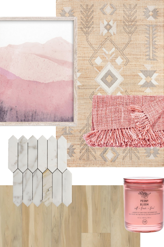 Consider adding a plush blush pink carpet to deepen the connection between flooring and decor. This brings comfort and anchors the space, creating a delightful interplay of textures. If you love pink and are ready to commit, then a blush pink carpet offers the perfect pop of color. If you're looking for less commitment, try your hand at combining white oak flooring with a pink area rug to establish a balanced foundation, ensuring a timeless and adaptable aesthetic that beautifully complements your blush pink-inspired living space.