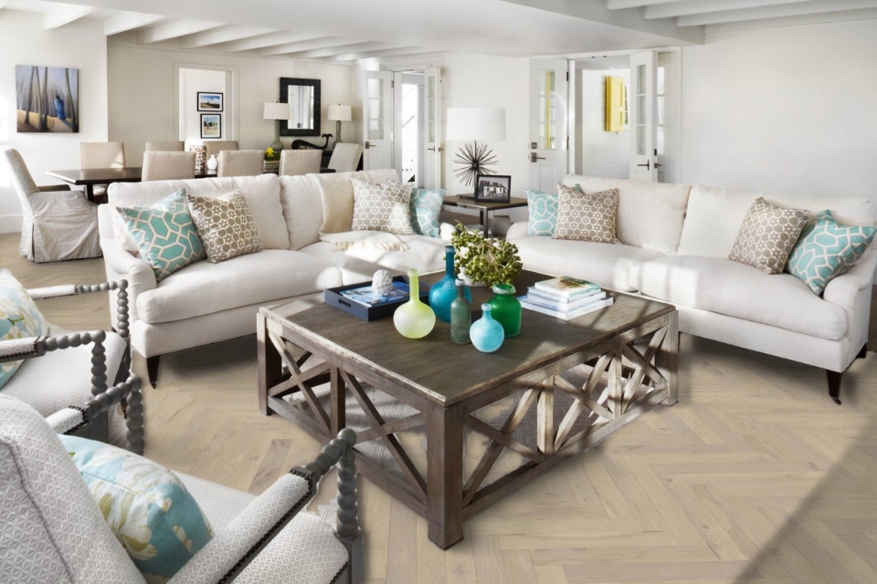 Using a bright hardwood floor perfectly complements the fresh blues and pinks that come with the French Riviera design. This floor is rich in character as it features aged and weathered hickory in its engineered hardwood. Plus, this flooring is moisture-resistant, so you can place it absolutely anywhere in your home. Choose a bright, eye-catching colour or a deeper, warmer hue.