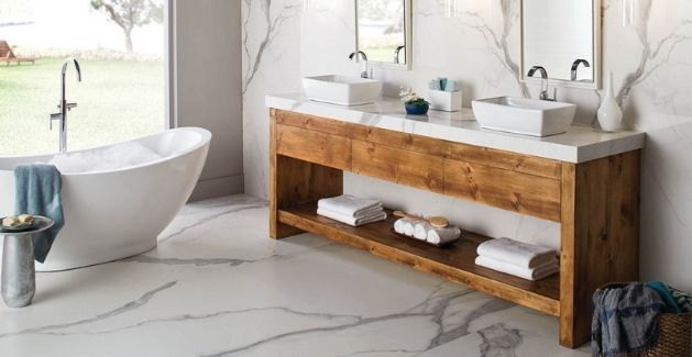 Porcelain tile, on the other hand, is more often used for bathroom tile flooring because its waterproof, trendy, and cost-effective. Since the water absorption rate for porcelain tiles is less than ceramic, it's better for rooms with high moisture levels. Depending on the style of porcelain tile you choose, the tiles can range from richly textured (which makes a great non-slip surface) to smooth marble tones.